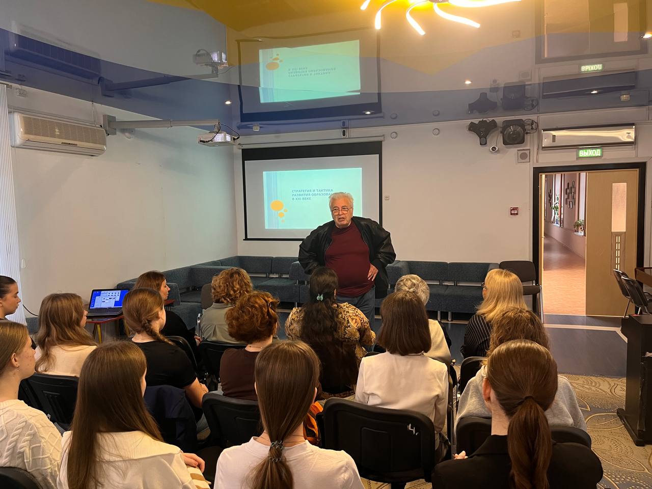 В рамках проекта «Учим всех» выступили директор школы Ямбург Е.Ш., руководитель подразделения «Начальная школа» Могилевская В.А., старший воспитатель Липейко Е.А., методист психолого-педагогической службы Медведева Ю.В., педагог-психолог дошкольного отделения Сорокина Л.И.