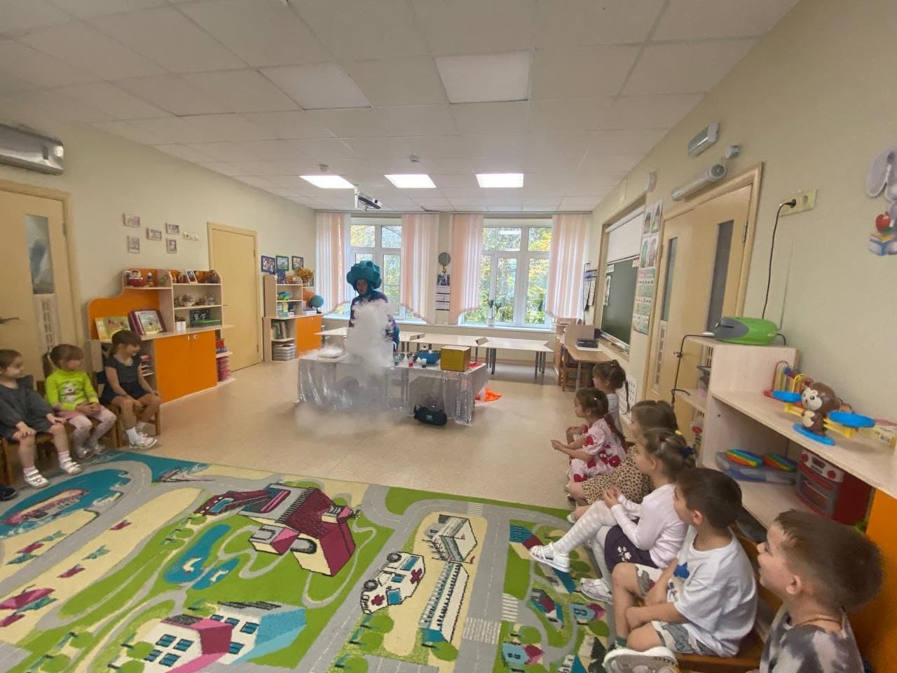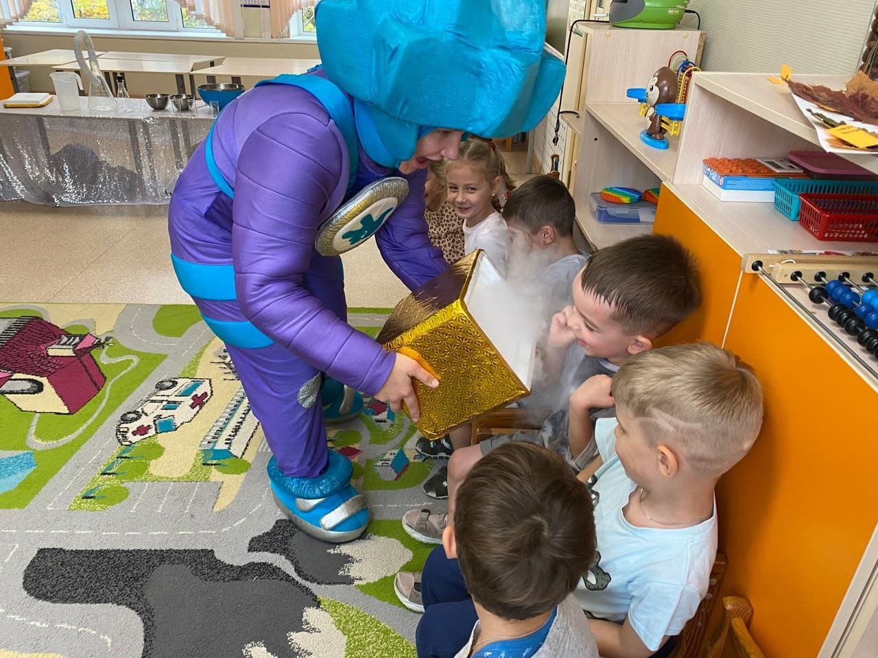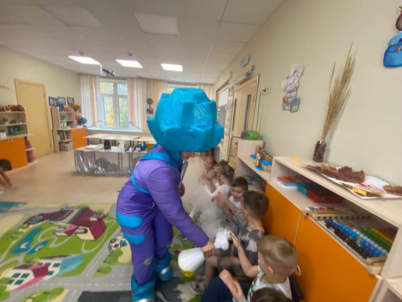 К детям группы №11 пришëл Фиксик Нолик с самыми зрелищными экспериментами. Ребятам были продемонстрированы необычные превращения и опыты: " Получение сухого льда ", " Что может сделать сухой лëд? ", " Морозное дыхание ", " Самонадувающиеся шары ", " Пенная башня " и другие. Яркое и эффектное шоу не только удивило и порадовало, но и показало детям чудеса науки. Это мероприятие запомнится ребятам надолго.