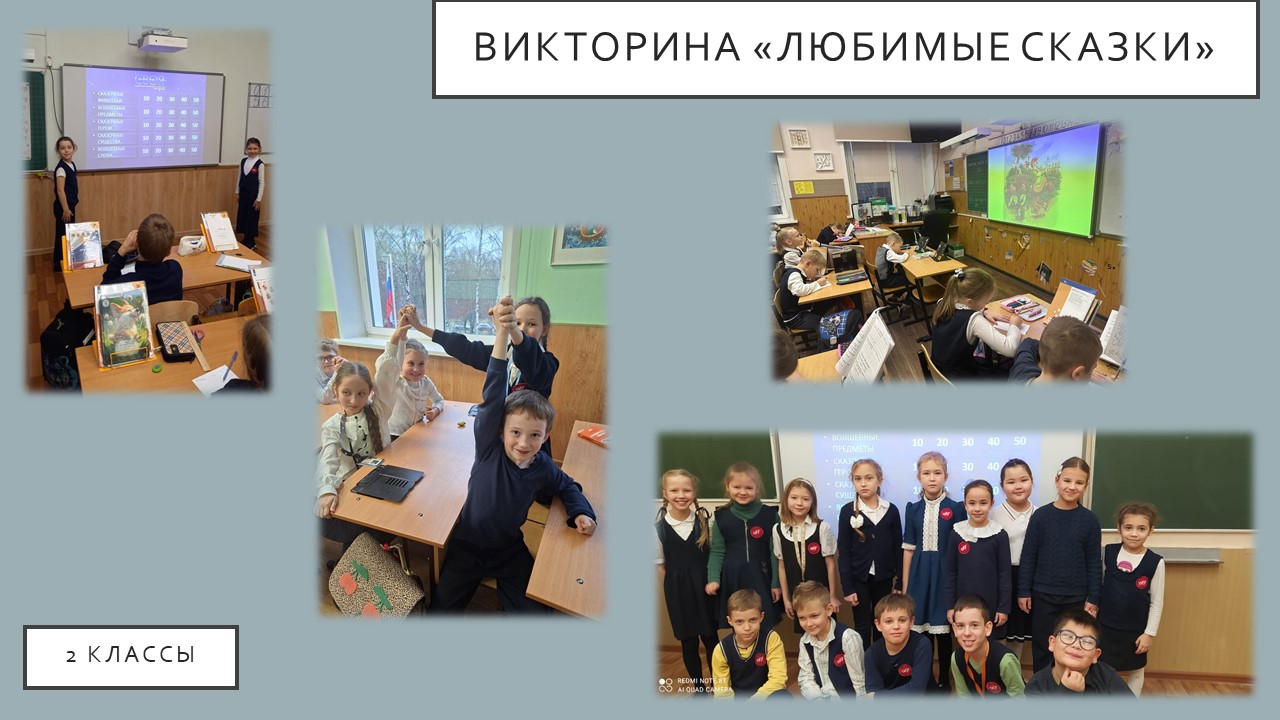 У второклассников прошла викторина в формате «Своя игра». В викторине «Любимые сказки» ребята отвечали на вопросы о жанрах фольклора, вспомнили о сказочных героях, показали свои умения отличать народные сказки от литературных, давали толкование пословиц. А еще у ребят была возможность самим придумать и оформить обложку к любимой книге. Выставка из лучших работ была оформлена на стендах первого этажа.